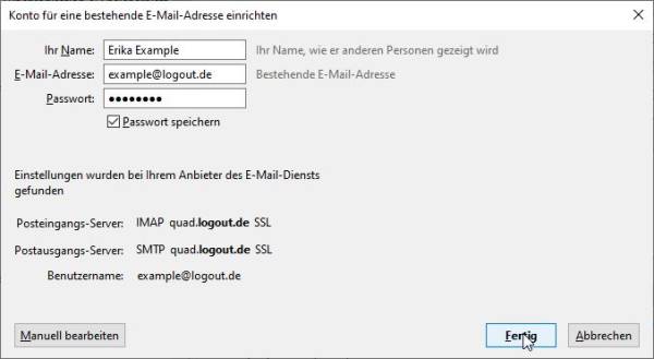 | Passwort | ihr e-Mail-Passwort |