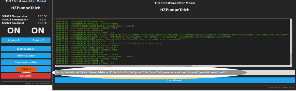- var1 ←- aktueller Status vom Regelung 1-OK 0-NOT READY - View by MQTT cmnd/mqttTopic/var1